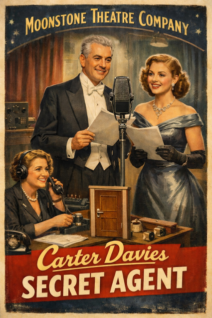 Relive radio’s Golden Age! Moonstone Theatre Company’s comedy offers a live broadcast of two episodes of a period radio thriller which transports you back to a time of tantalising adventure serials like Paul Temple and Dick Barton. Full of derring-do heroes and evil villains. But these aren’t the only protagonists with a tale to tell. The actors have an agenda, too …